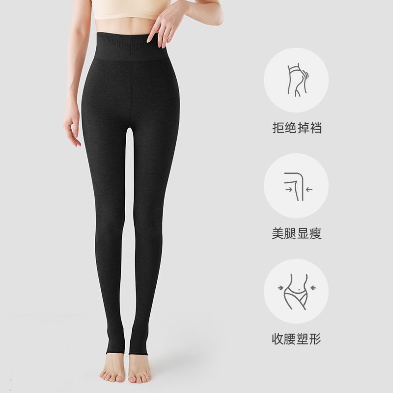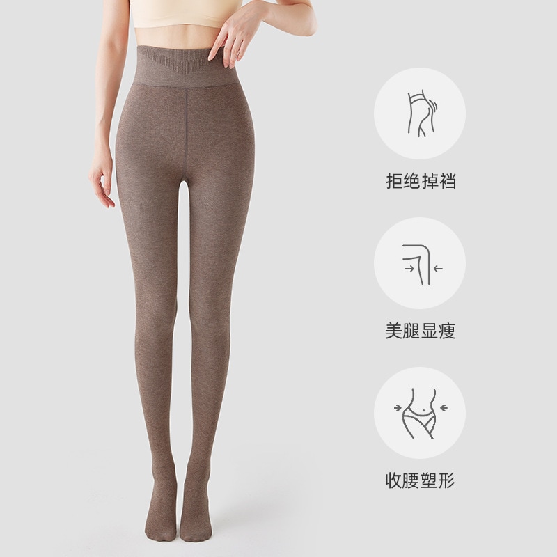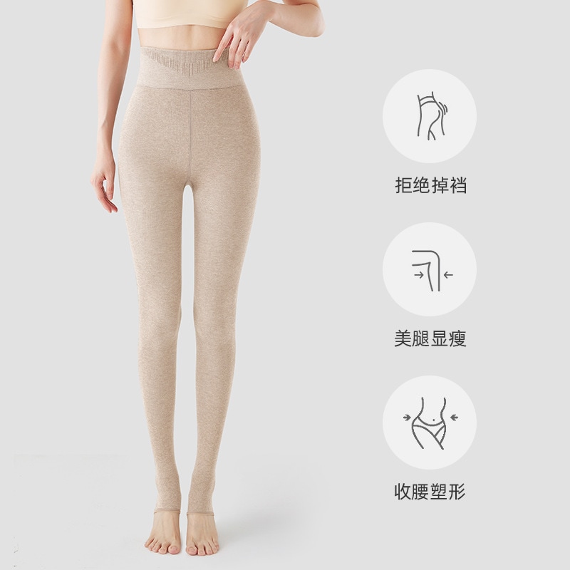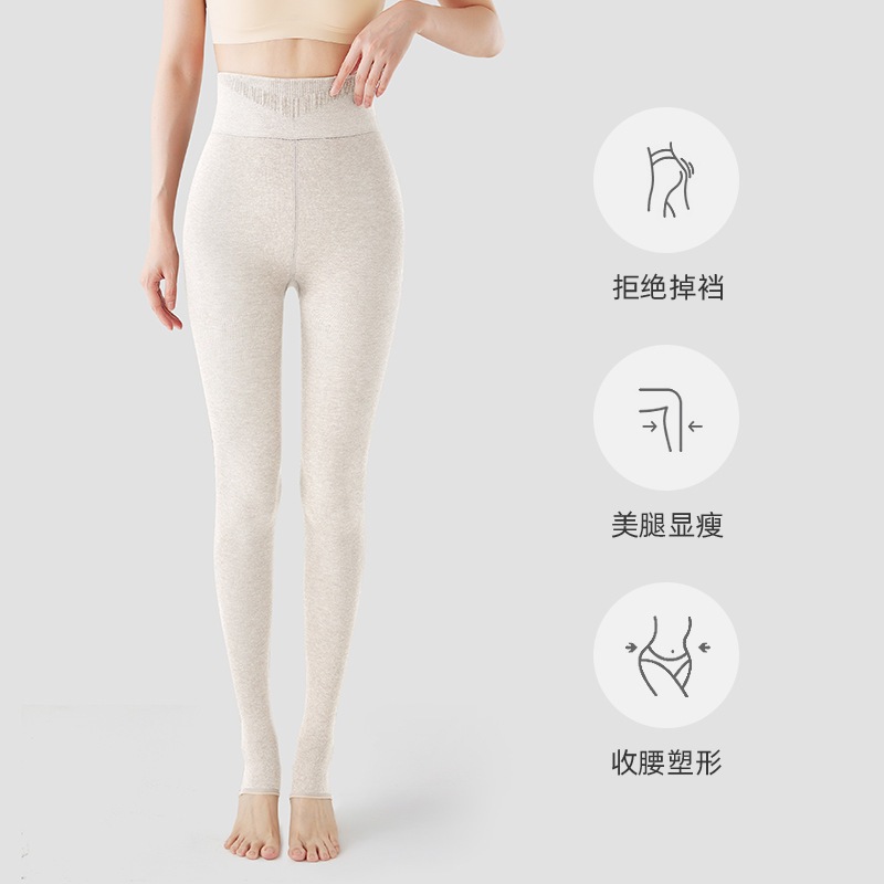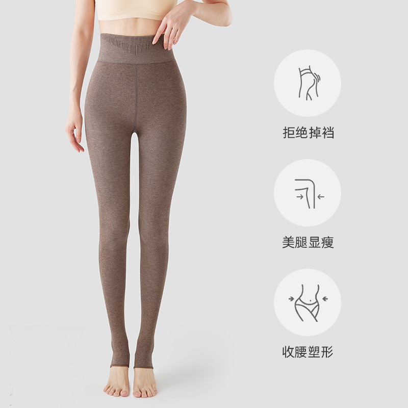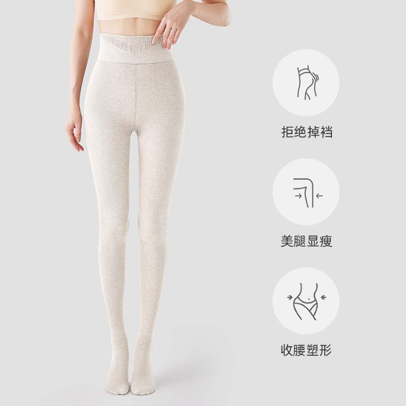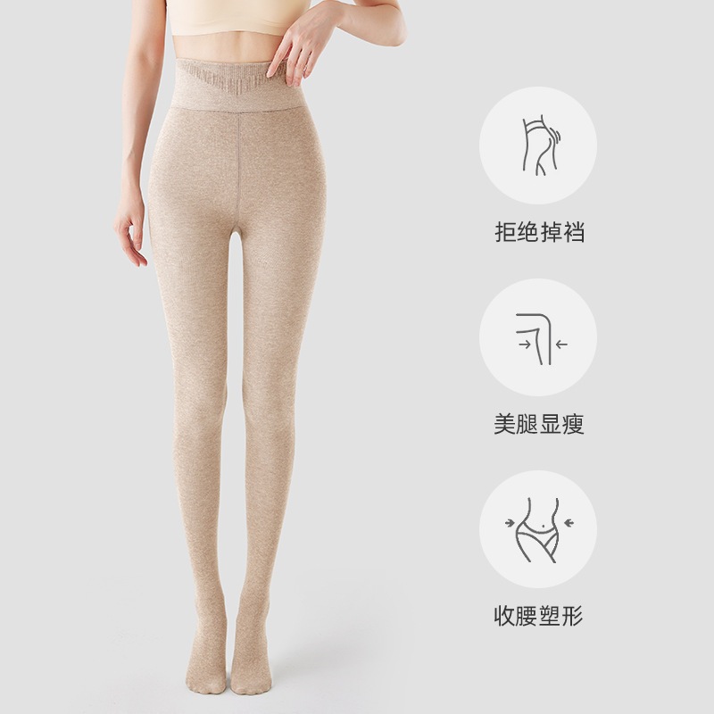 秋冬の女性用の背の高いオフホワイトのレギンスとベルベットと厚みのあるオートミールカラーの拡張圧力痩身パンスト