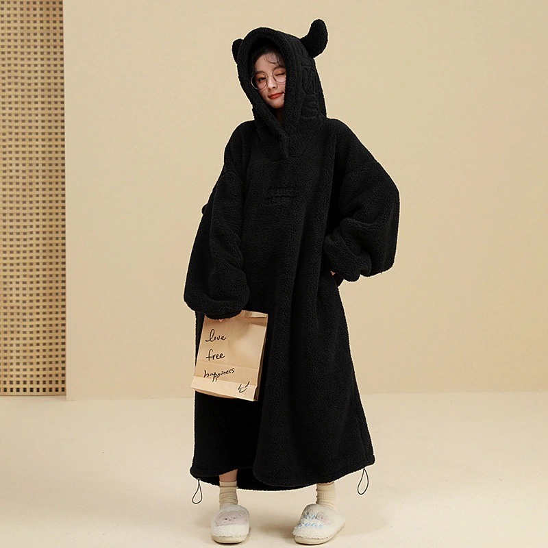秋冬 パジャマ レディース 可愛い 小悪魔 ネグリジェ 大きいサイズ 体型カバー  ゆったりルー ムウェア 快適 厚手 裹起毛 暖かい 寝巻き 部屋着30%までに制限