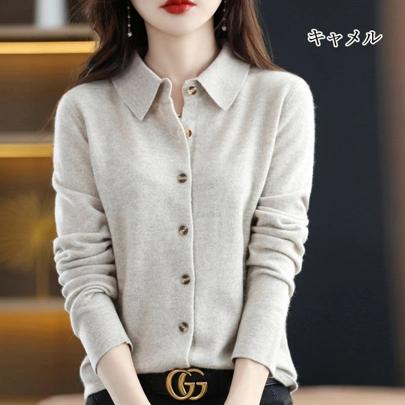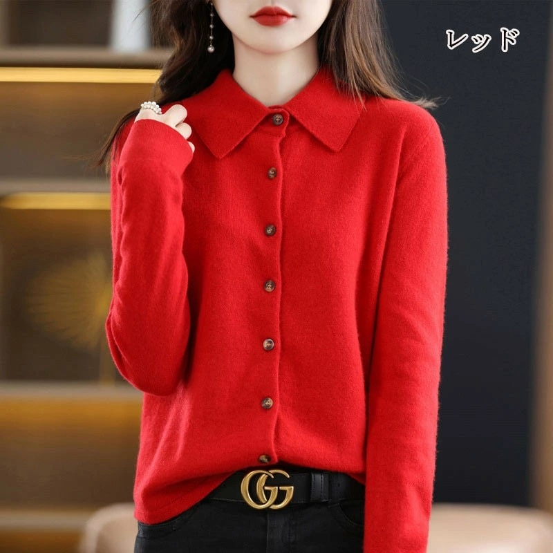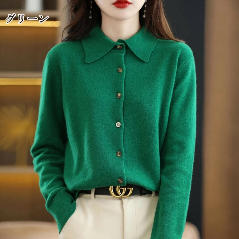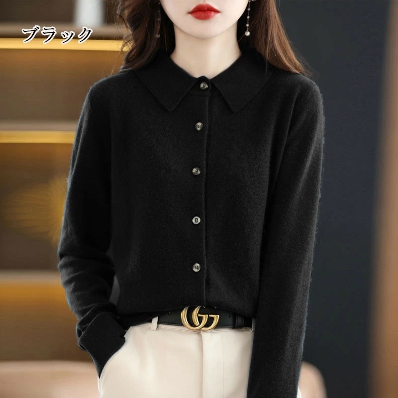 秋冬 ニットカーディガン ショート丈 長袖 襟付き ニットセーター 前開き 無地 羽織り トップス カットソー カジュアル シンプル セーター アウター ゆったり オシャレ ニットコート ニットソー