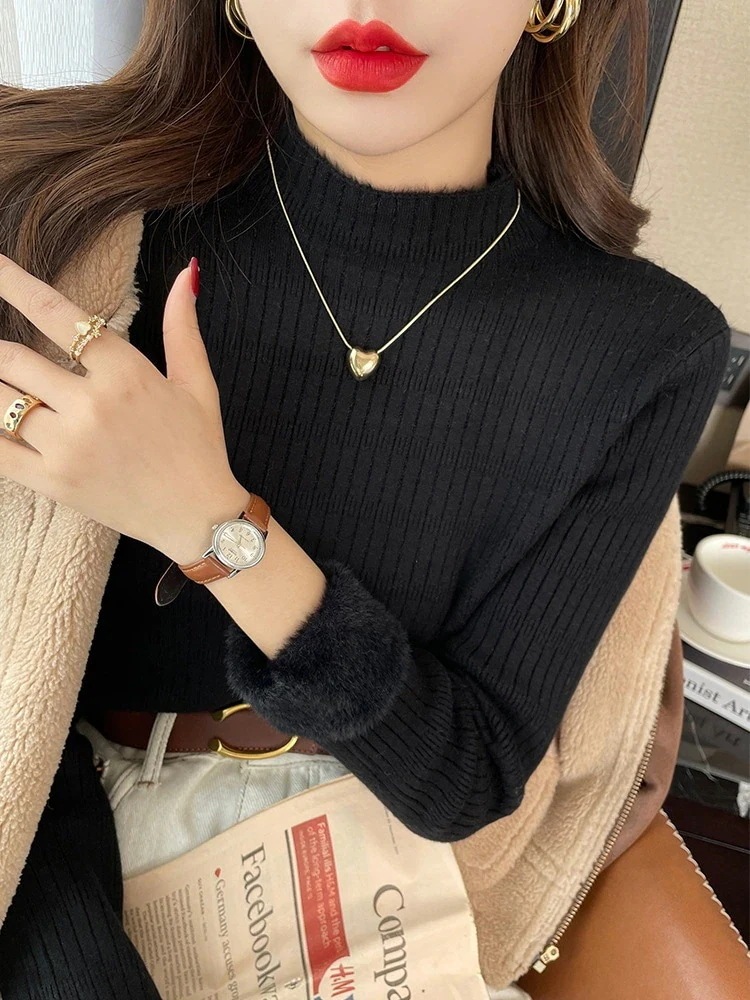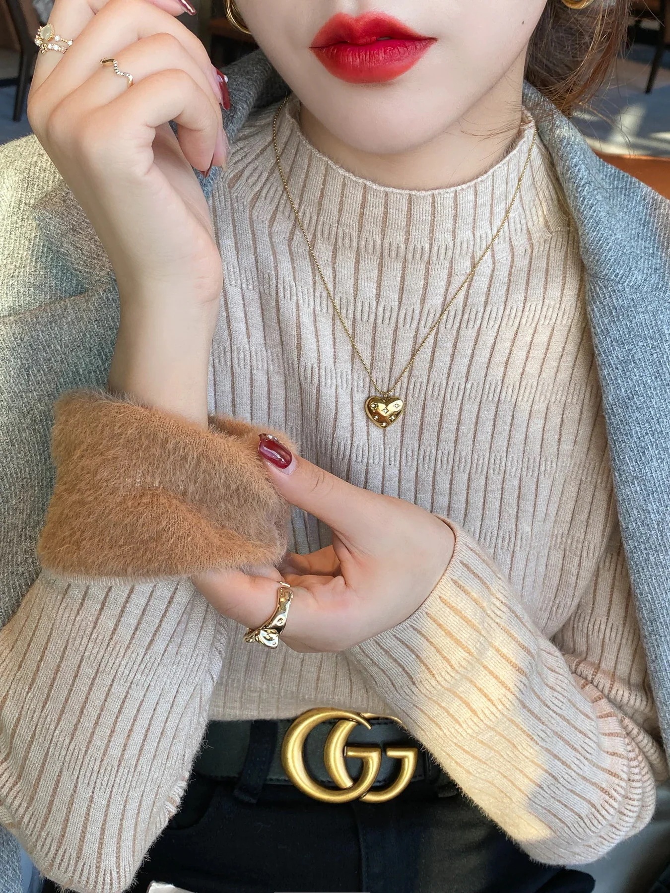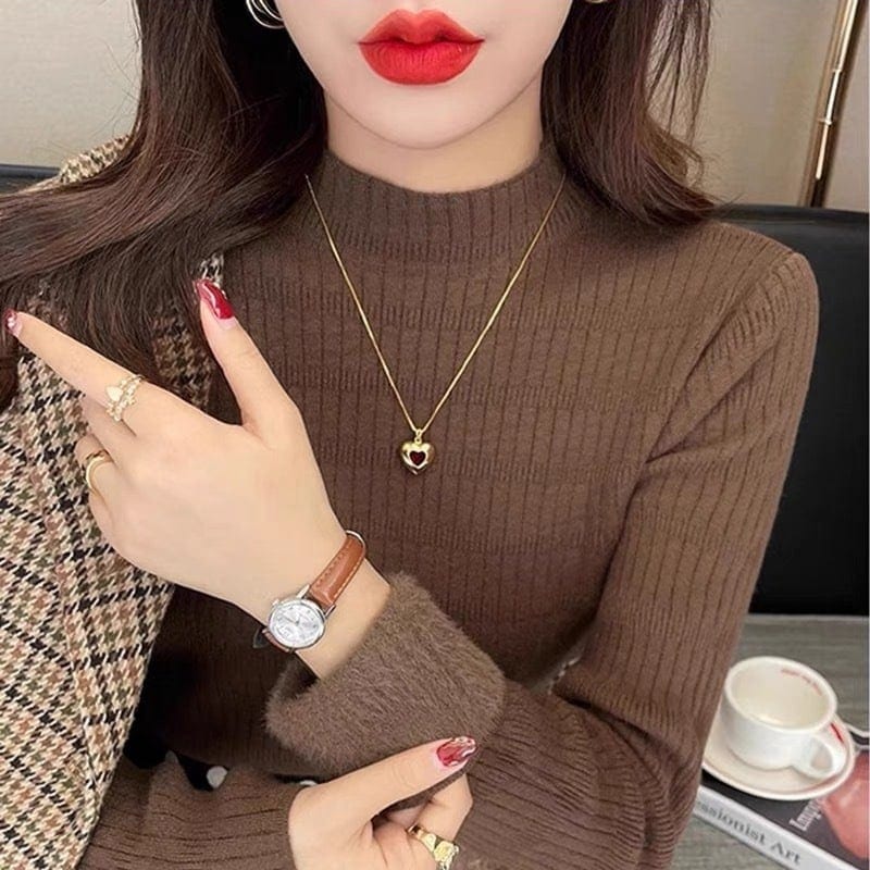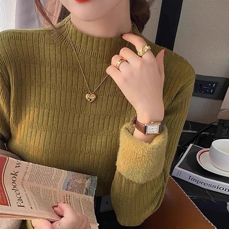 韓国人気商品ニット 厚手の裏起毛 二重蓄熱 保温 暖かい 上質 トップス 無地 ハイカラー大サイズ