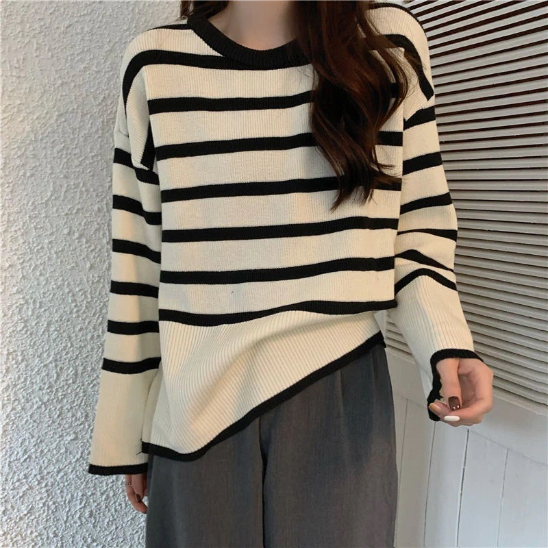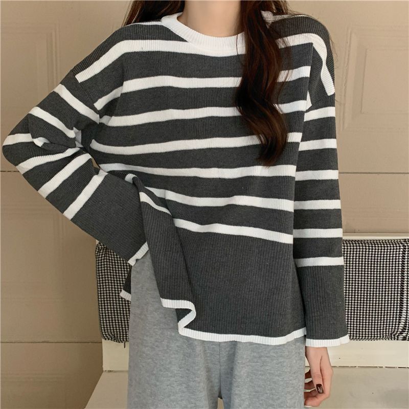 早秋新作 ニットトップス ニットハイネック ストライプセーター ハイネック上着 ゆったりフ レディース