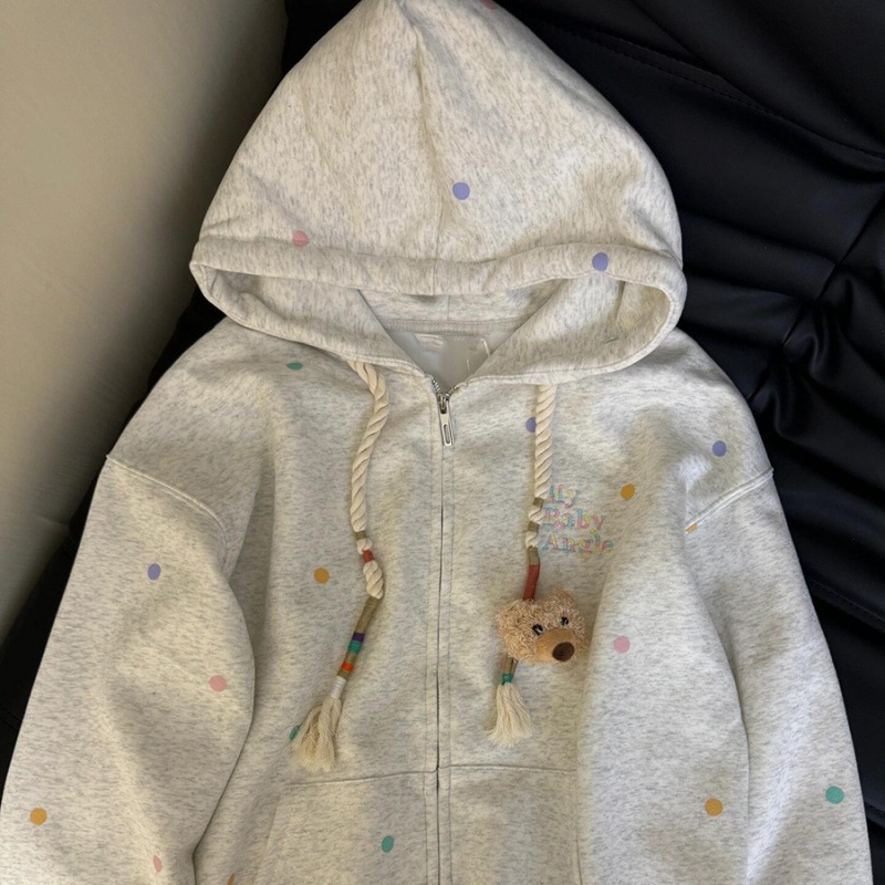 かわいいトレーナー女性のベルベット肥厚フード付きカーディガンコート秋と冬の 2024 新しい緩い怠惰なスタイルのパーカー