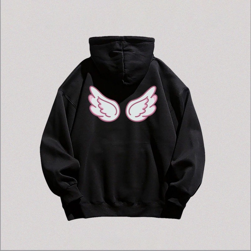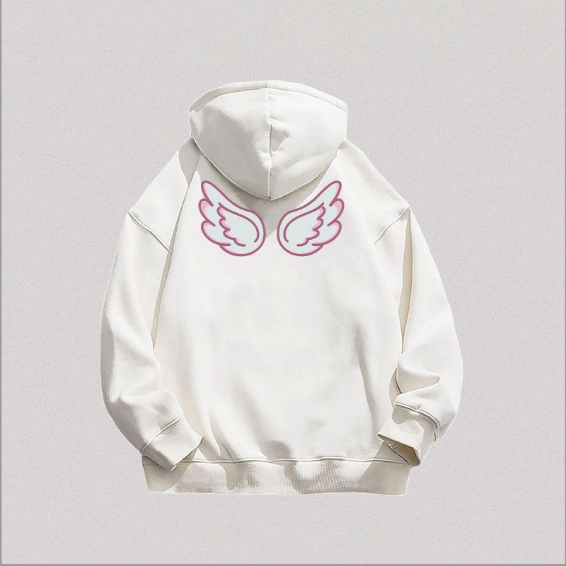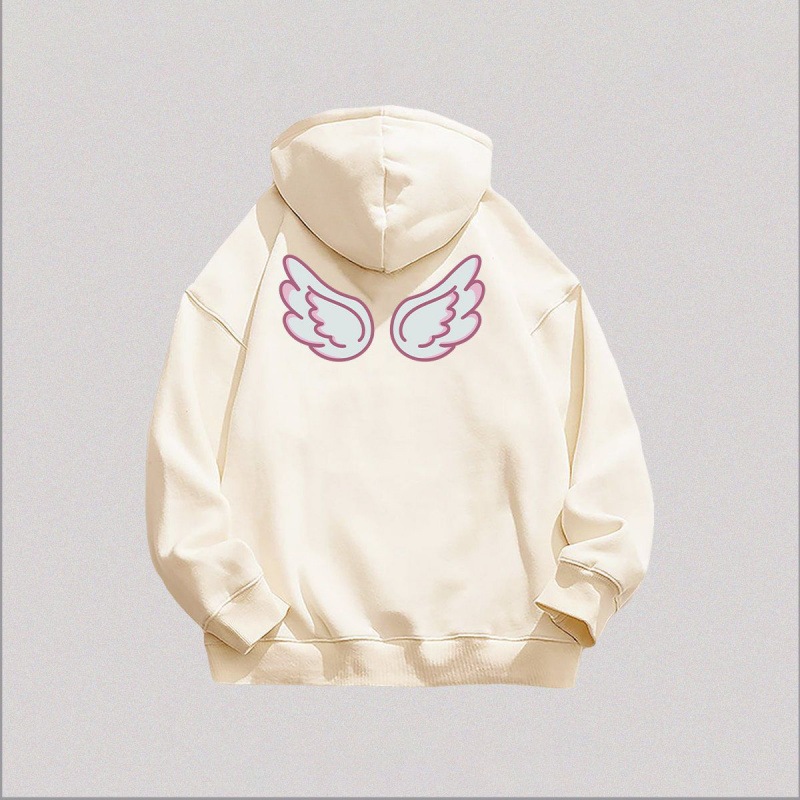 甘くてかわいい天使の羽プリントの女性用フード付きスウェットシャツトレンドの秋と冬のベルベットの厚みのある怠惰なスタイルのトップ