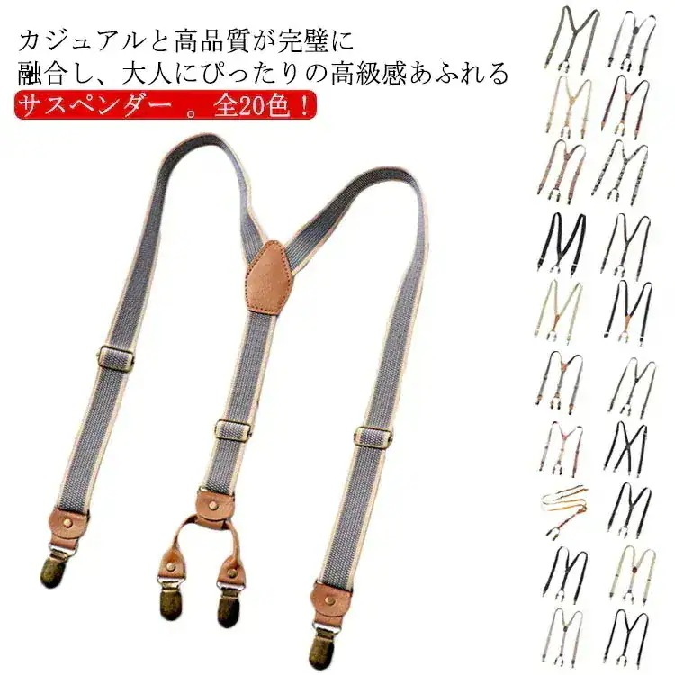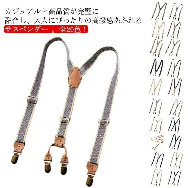 2024新入荷全20色サスペンダー メンズ レディース Y型 25mm ジーンズ 吊りパン ベルト 吊りバンド ゴムベルト 妊婦 Y型 X型 クリップ カジュアル フォーマル 高級感漂う 革仕様 おし