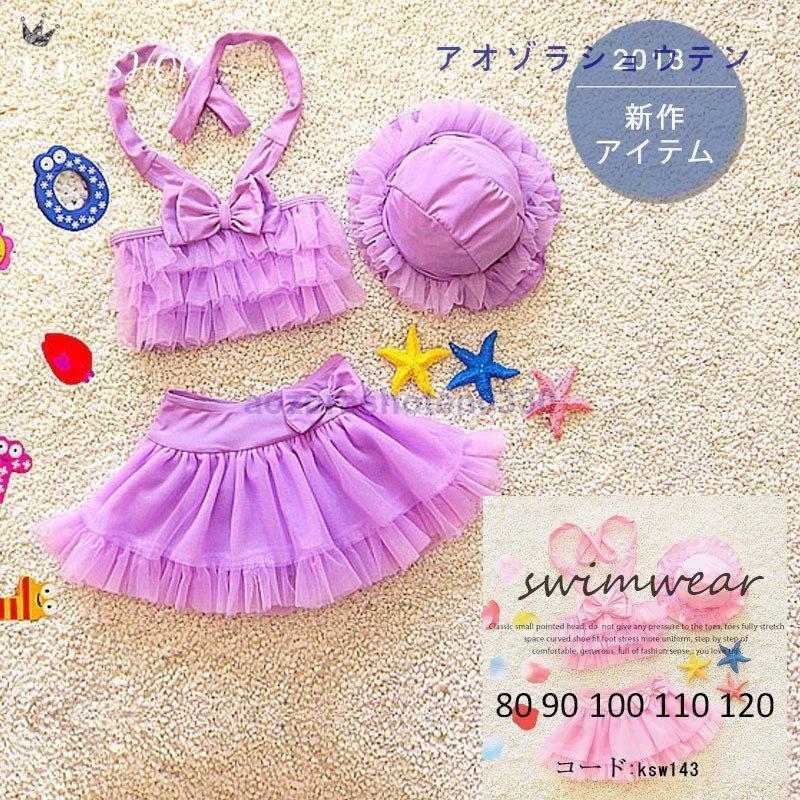 キッズ水着 女の子 セパレート水着 フリル ビキニ 3点セット キャップ付き 可愛い 子供水着 ベビー スイムウェア プール 温泉 8090100110120新作