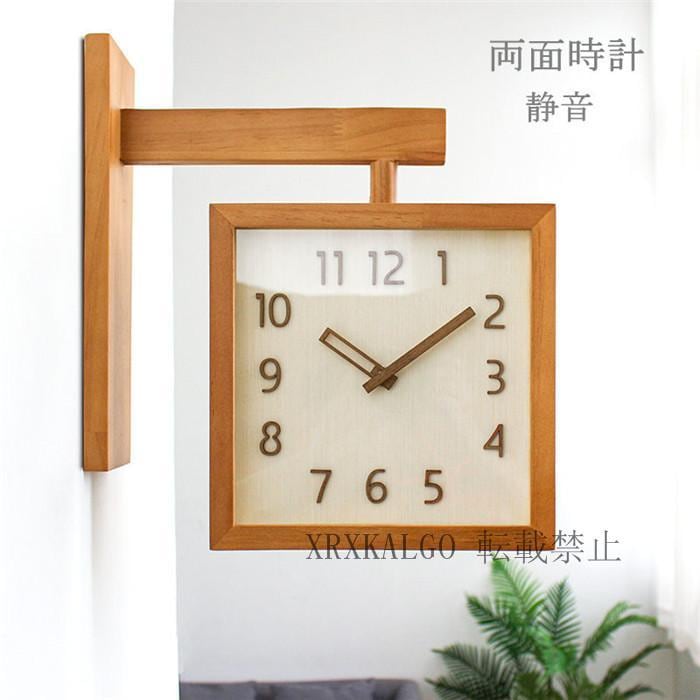 壁掛け時計 掛け時計 四角型 両面タイプ 木製 クロック 新生活応援 インテリア ガラス 壁飾り 静音 北欧 壁掛け モダン 新築祝い ギフト 電池 静音
