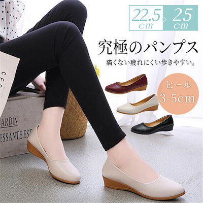 パンプス 痛くな ウェッジソール レディース シューズ ローヒール 美脚 走れる アーモンドトゥ スムース 通勤 甲高 幅広 究極のパンプス