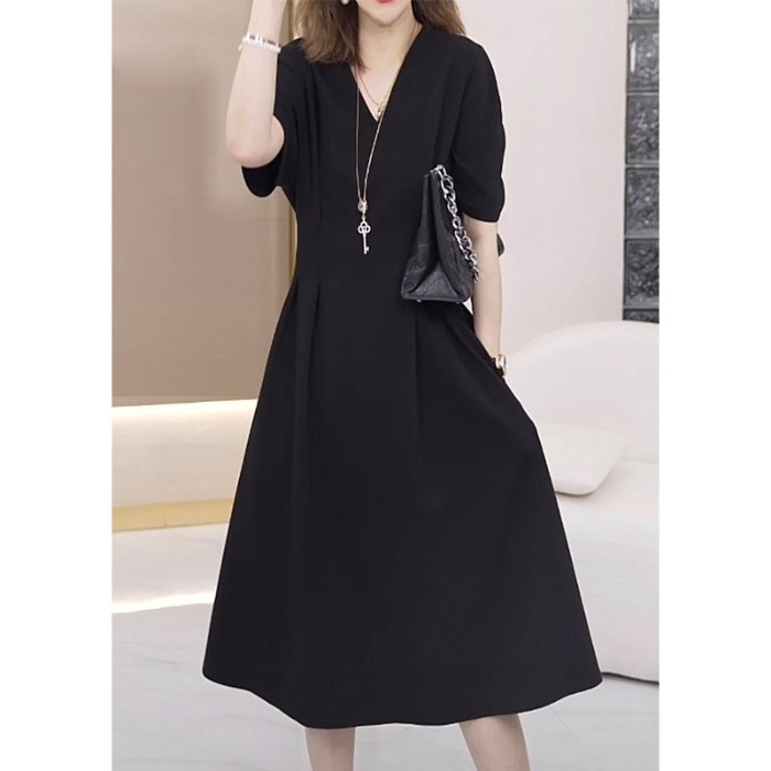 スタイル良くおしゃれなプリーツライトラグジュアリーワンピース大きいサイズ肉感カバー股下ウエストスリム膝丈スカート2024