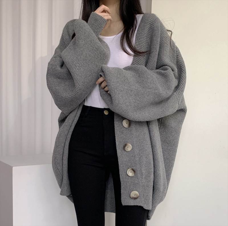 リブニット カーディガン 羽織 レディース ボリューム袖 春 秋 冬Vネック ルーズ ビックシルエット30%までに制限