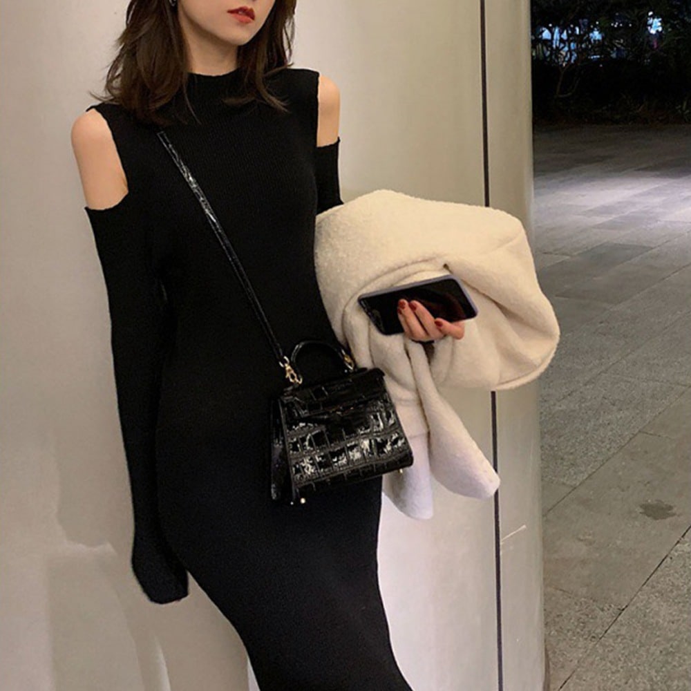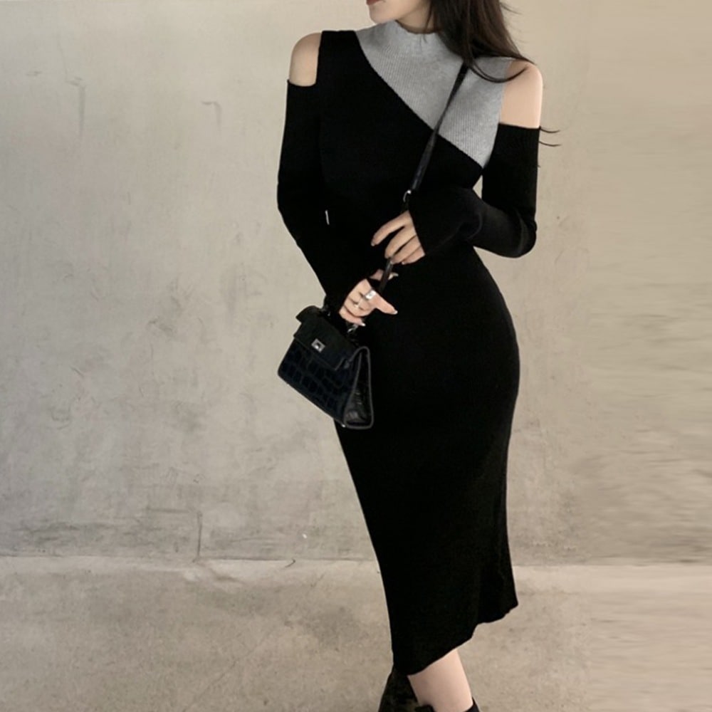 人気の新作先行発売長袖レディース 肩出し ニットワンピース【短納期】30%までに制限