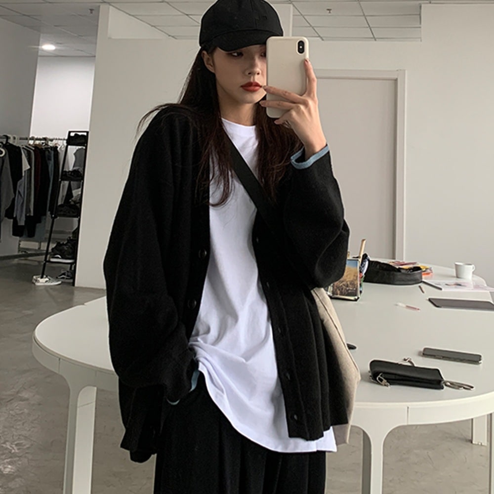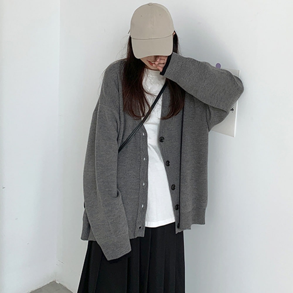 人気の新作先行発売韓国風 ゆったり 長袖 ニットアウター ニットカーディガン レディース ネック 秋冬 シンプル 羽織 V ニットトップス【短納期】30%までに制限