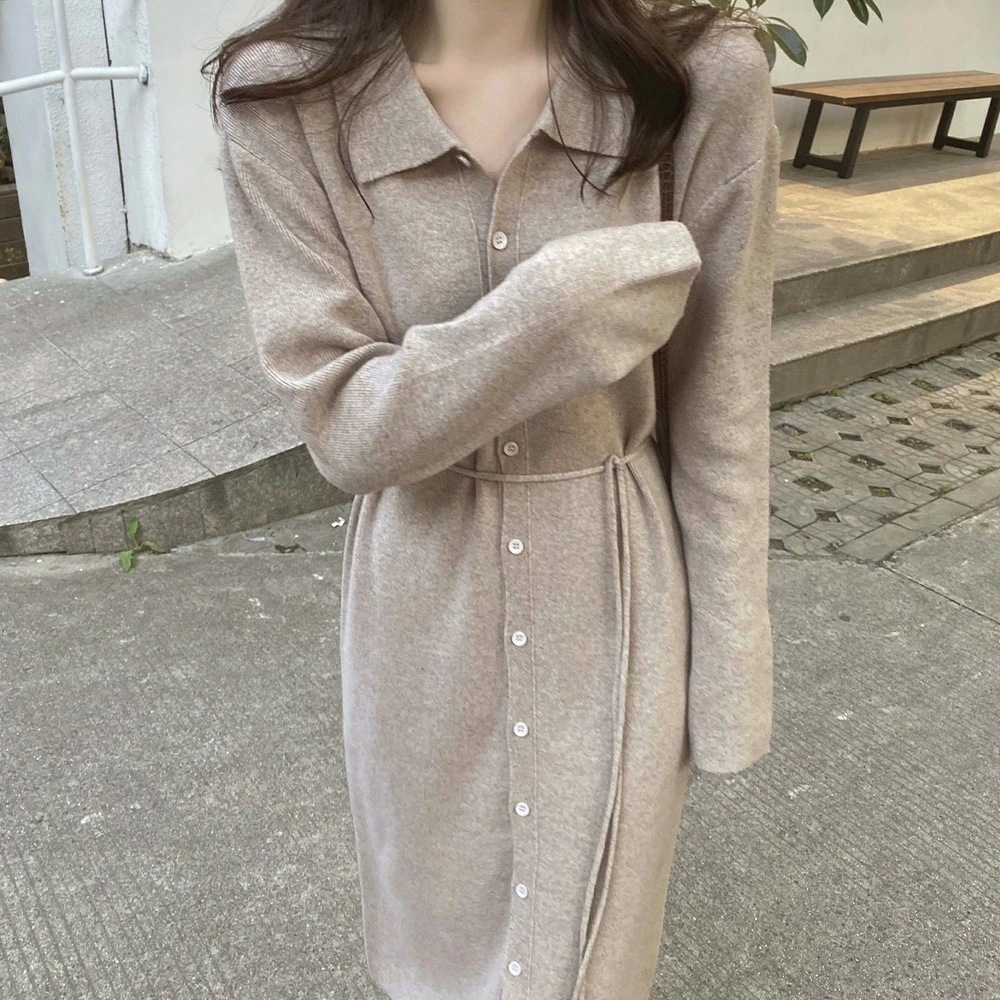人気の新作先行発売ニットワンピース 着やせ マキシワンピース 40代 秋冬 無地 体型カバー vネック レディース シンプル ロングワンピ【短納期】30%までに制限