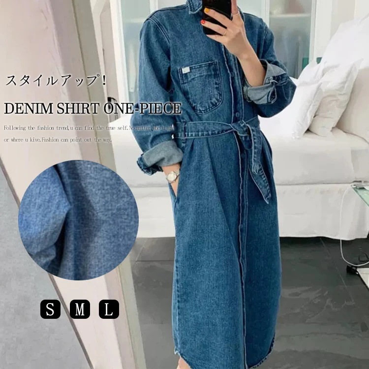 デニム ワンピース 長袖 きれいめ シャツワンピース 秋冬 ロング デニムワンピース きれいめ おしゃれ 襟付き シャツ ロングシャツ レディース 秋 デニムシャツ マキシ丈 ベルト付き デニムワンピ