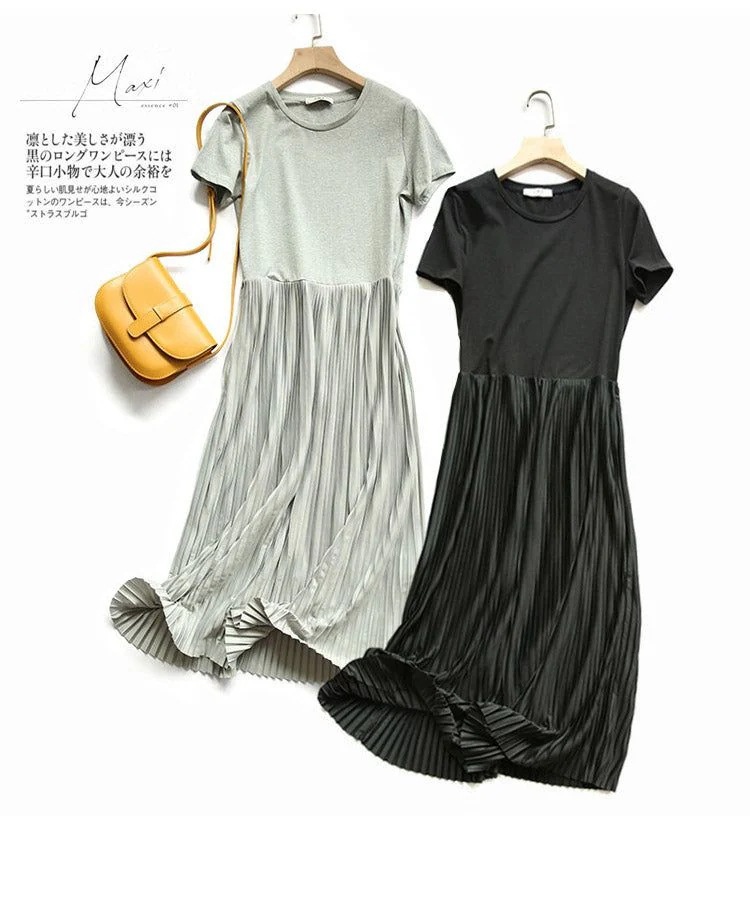 ワンピース 2024新作 夏物 半袖 薄手スカート プリーツ 着痩せ30%までに制限