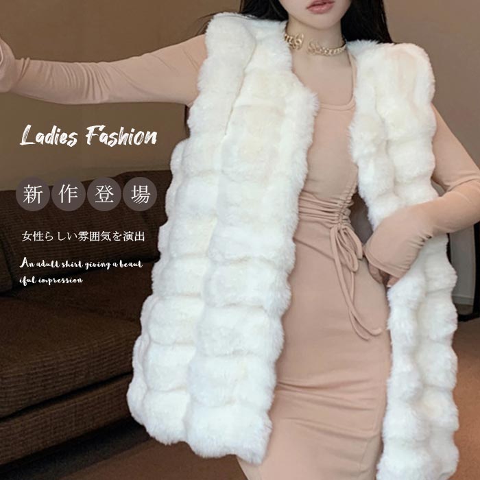 ファーベスト レディース ベスト 秋 冬 フェイクファー 羽織もの 羽織り アウター コート ジャケット ノーカラー ショート ベスト ジレ 前開き 秋冬 エコファー フェイク ファー 無地 大きいサ