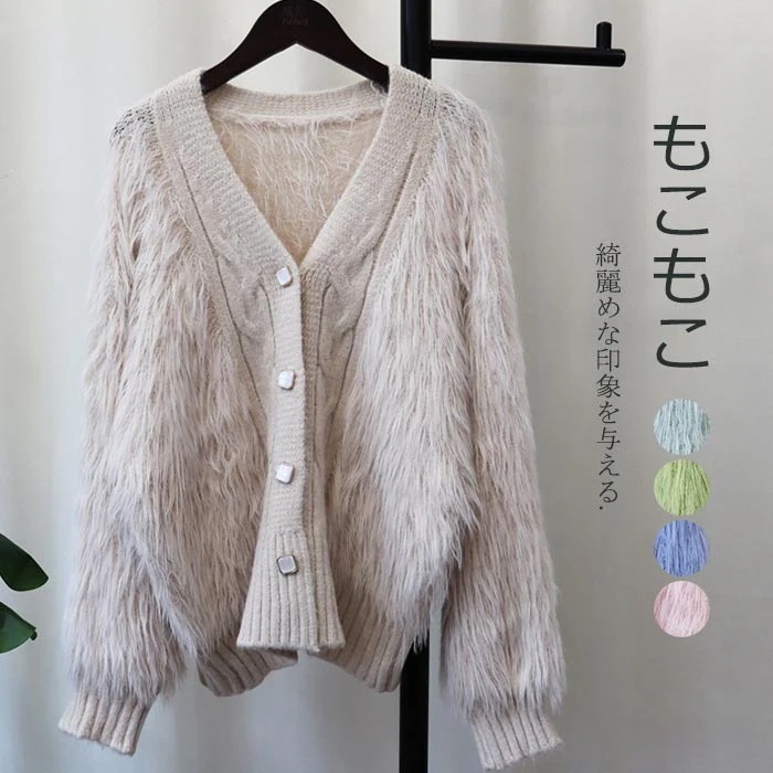 ニットカーディガン アウター レディース カーディガン ニット 秋 冬 トップス 羽織り 長袖 アウター 秋冬 カーディガン vネック ショート丈 シャギー 厚手 暖かい あたたか 軽い コーディガン