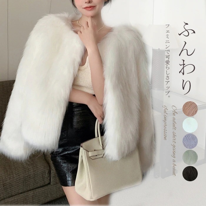 ファーコート レディース ショート丈 コート 秋冬 アウター ふわふわ モコモココート ショート丈コート 冬アウター モコモコ 防寒 フェイクファー ジャケット 暖かい もこもこ 秋冬コート カジュ3