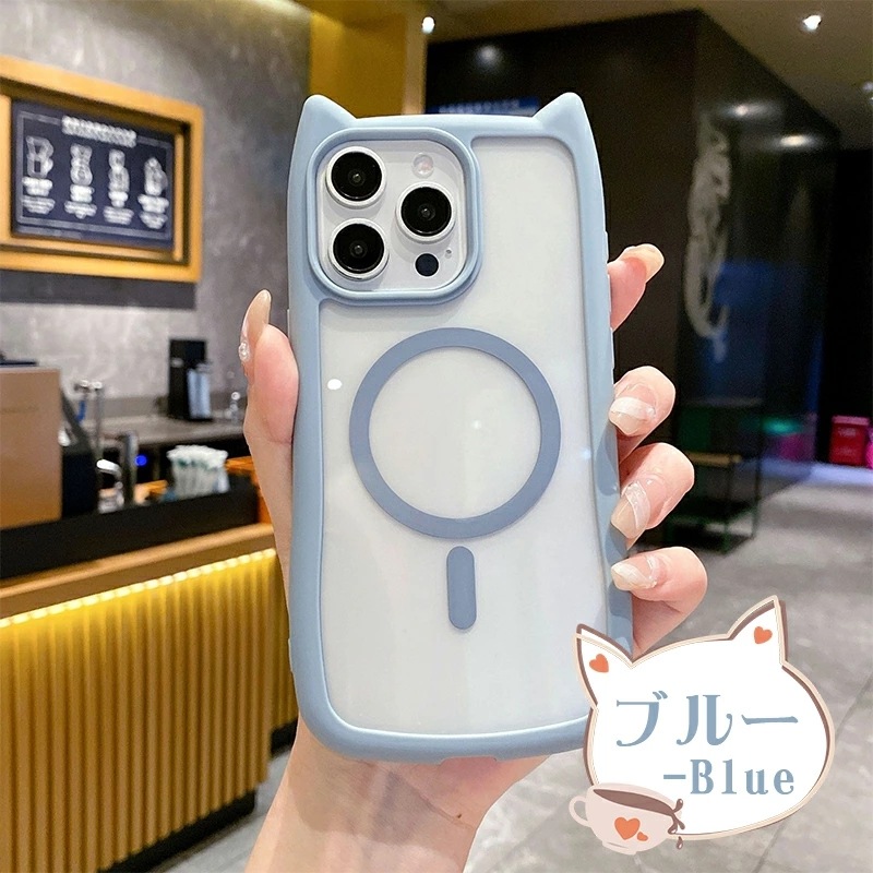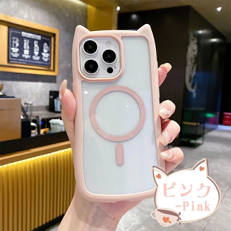 iphone15 ケース シンプルな猫耳カップル電話ケース MagSafe対応 iphone15pro ケース 全面保護 落下防止iphone14 ケース 薄型 シンプル ワイヤレス充電対応