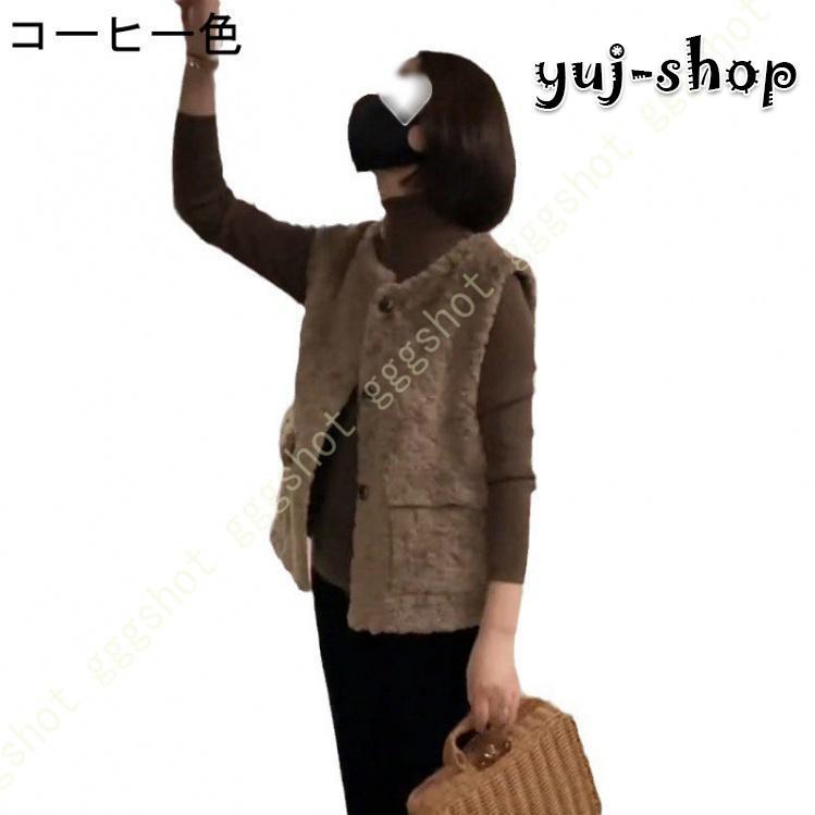 万能流行感 ボアベスト ベスト レディース 前開き 春秋冬 ゆったり ロングベスト シンプル 大きサイズ 折襟 秋冬ベスト 無地 秋冬アウター モコモコ 体型カバー おしゃれ