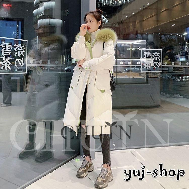 万能流行感 ダウンコートレディース白 ミディアム丈ダウンコート黒 ファー付きダウンコートフード付き ファー取り外し可能 アウター 冬物新作 カジュアル 大きいサイズ