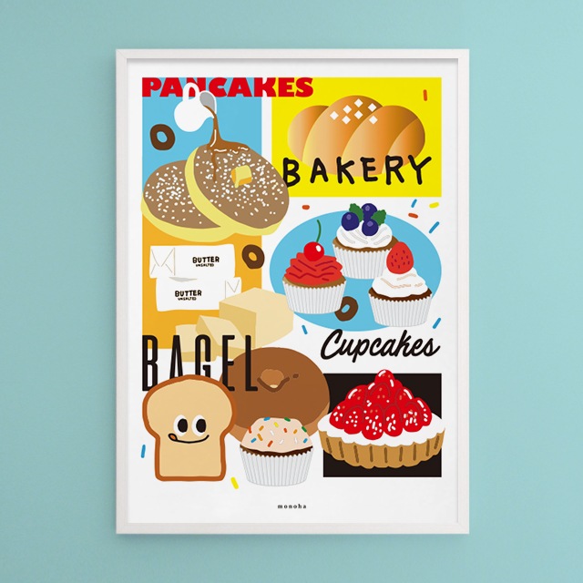 monohaパンとデザート ポスター A3 size 6 types ベーカリー・カフェ