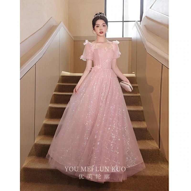【2枚購入で 3oo円OFF!】ピンクのドレス 2025 気質スーパーハイエンドプリンセスドレス卒業ホスト成人式ロングドレス