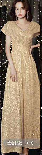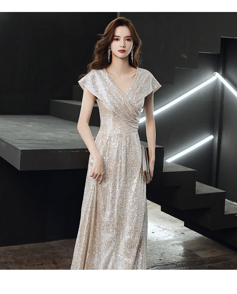 【2枚購入で 3oo円OFF!】シルバー宴会ドレス 2025 女性用ハイエンド V ネックスパンコールホストドレス