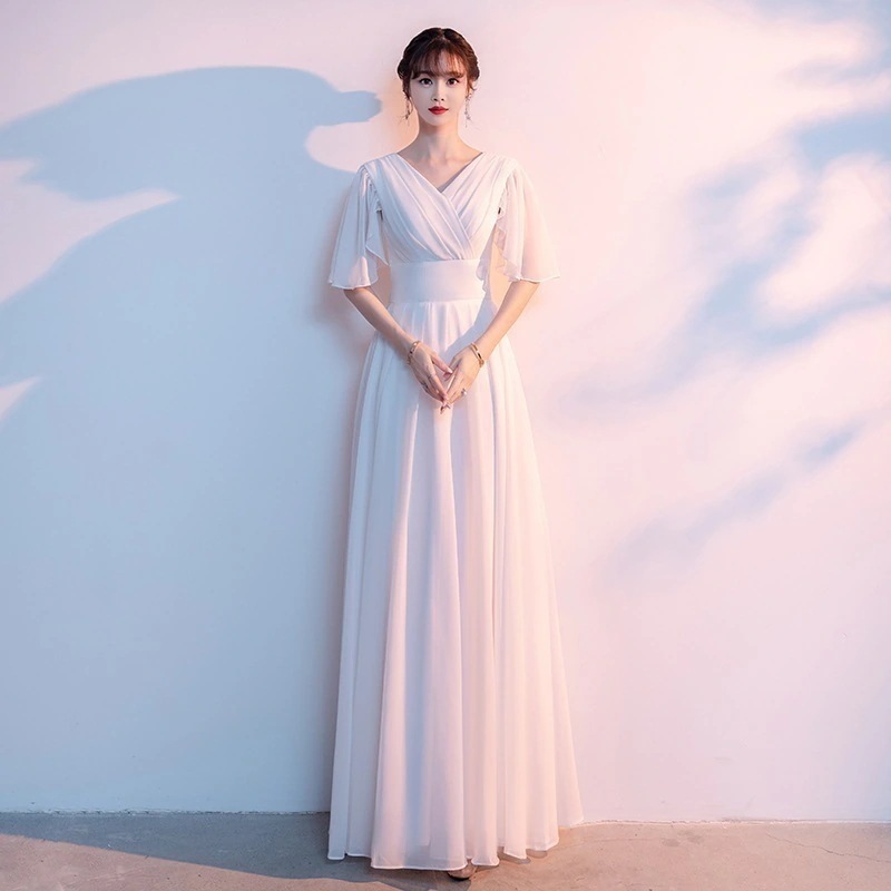 【2枚購入で 3oo円OFF!】コーラスパフォーマンス服女性用 2025 ホワイト学生美術試験ドレスロングスカートパフォーマンス歓迎エチケット服