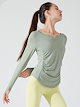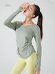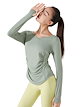 [優億] ヨガウェア レディース 長袖 ヨガ トップス フィットネス 指穴付き スポーツシャツ 体型カバー吸汗速乾 ストレッチ ヨガシャツ トレーニング スポーツウェア 軽量 伸縮 速乾 (L, グリ