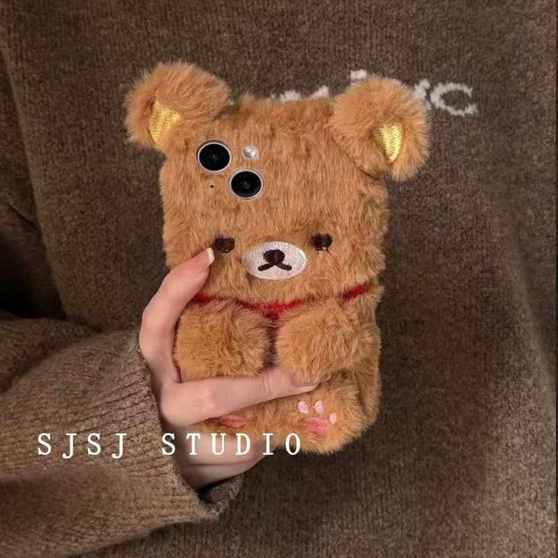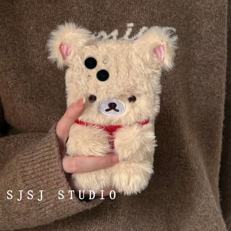 ぬいぐるみ携帯電話秋と冬のぬいぐるみイージーベアアップル16電話ケースiphone15promaxソフト141312女性14proネットレッドケース