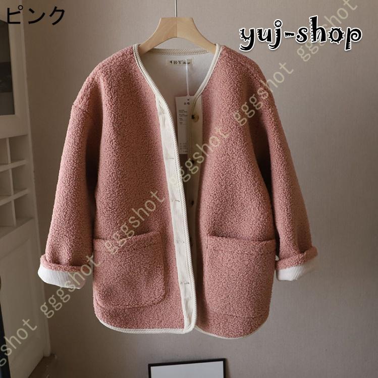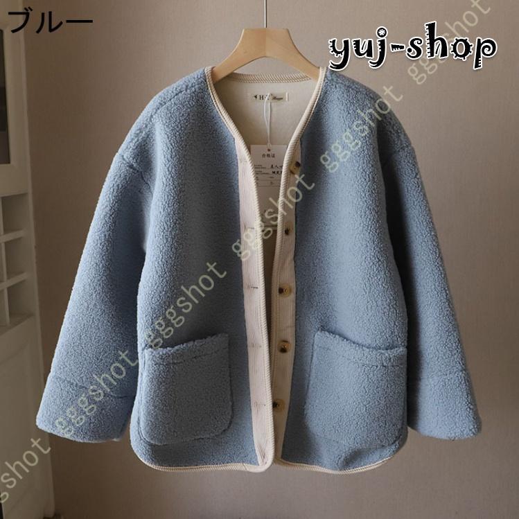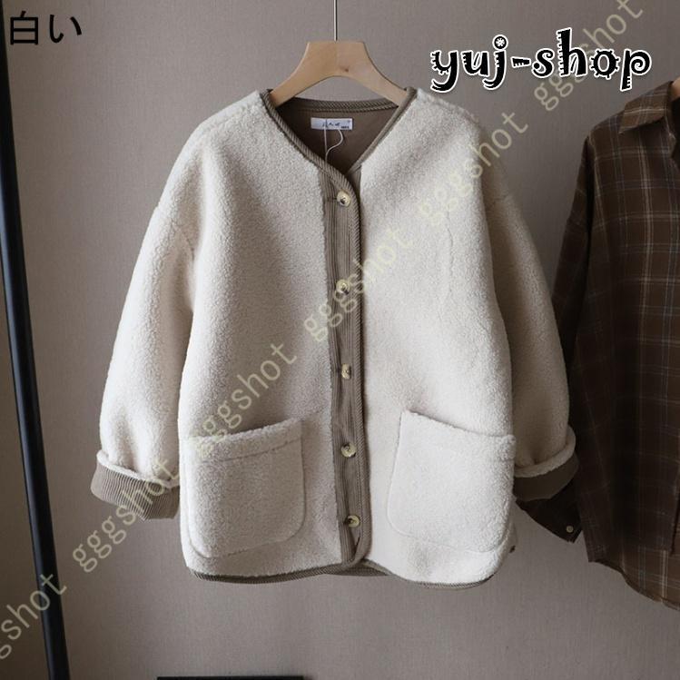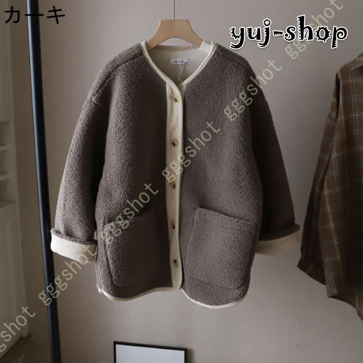 人気沸騰 新品 ボアコート レディース ボアジャケット 長袖 フリースジャケット もこもこ 防寒コート アウター ゆったり ノーカラー ボアブルゾン ドロップショルダー