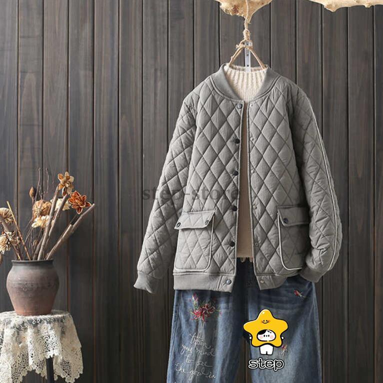 ノーカラーキルティング ジャケット レディース ノーカラー コート アウター 羽織り 長袖 中綿 コート 防寒 秋 冬 キルティング コート