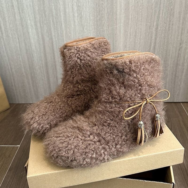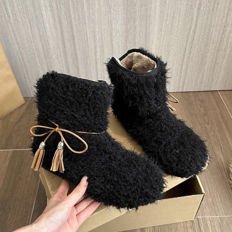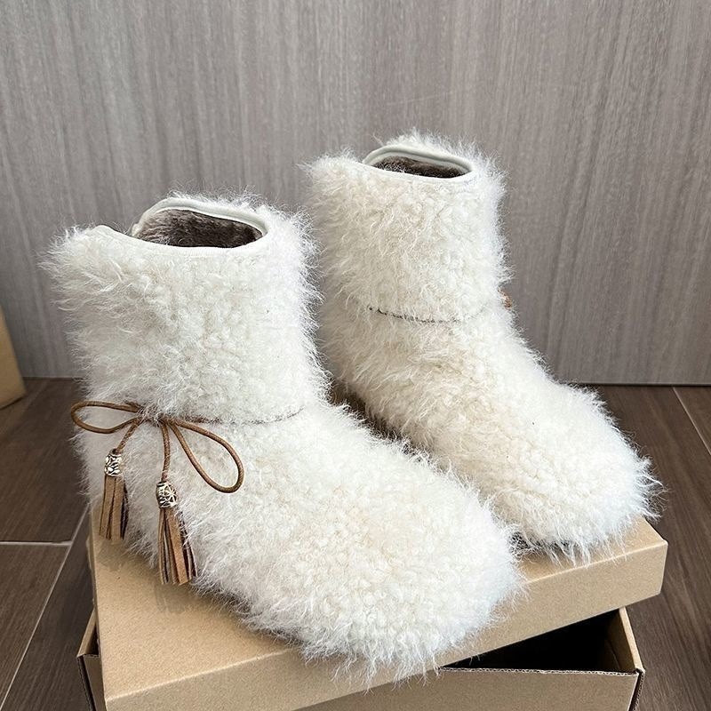 韓国ファッション ショートブーツ 加絨厚保温!ファーシューズ女性の秋冬アウターは甘いラムの毛を履いてショートブーツを履いてかわいいスノーブーツ