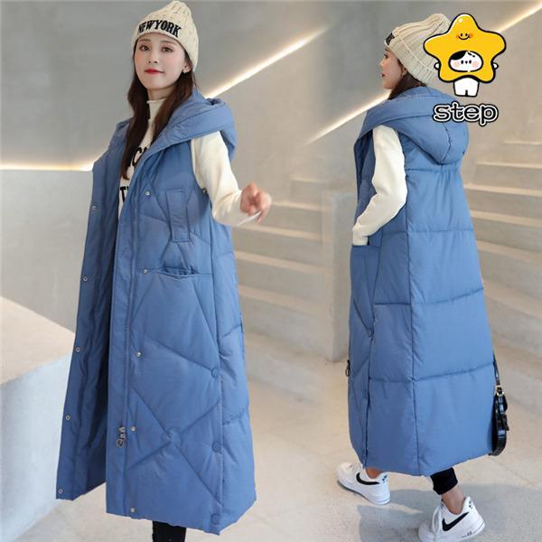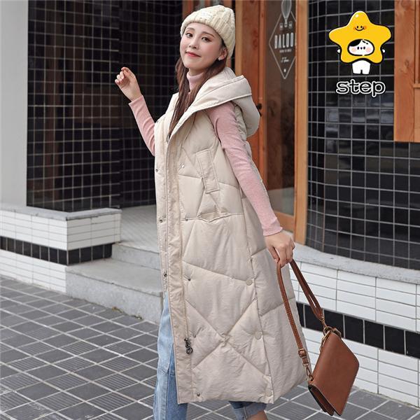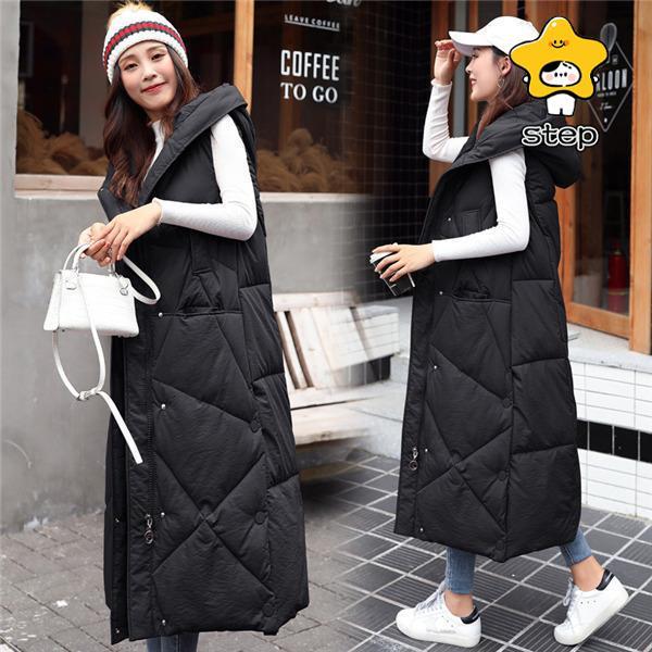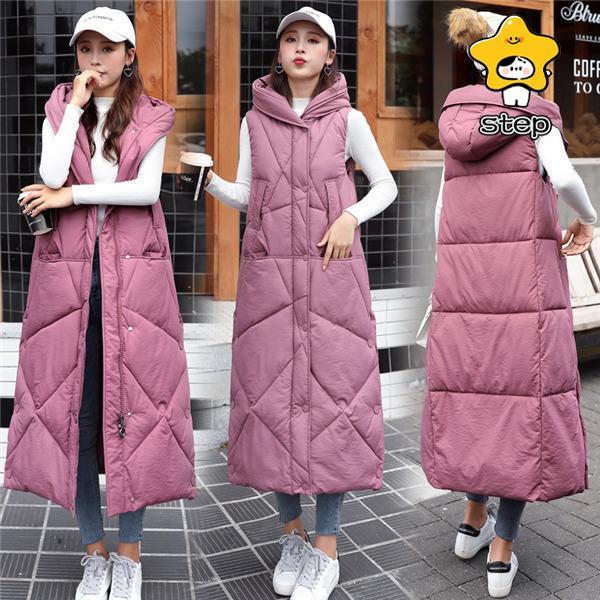 ダウンベスト レディース ロング丈コート 厚手 暖かい フード付け ダウンジャケット 秋冬 中綿ベスト ゆったり 防寒着 おしゃれ 大きいサイズ