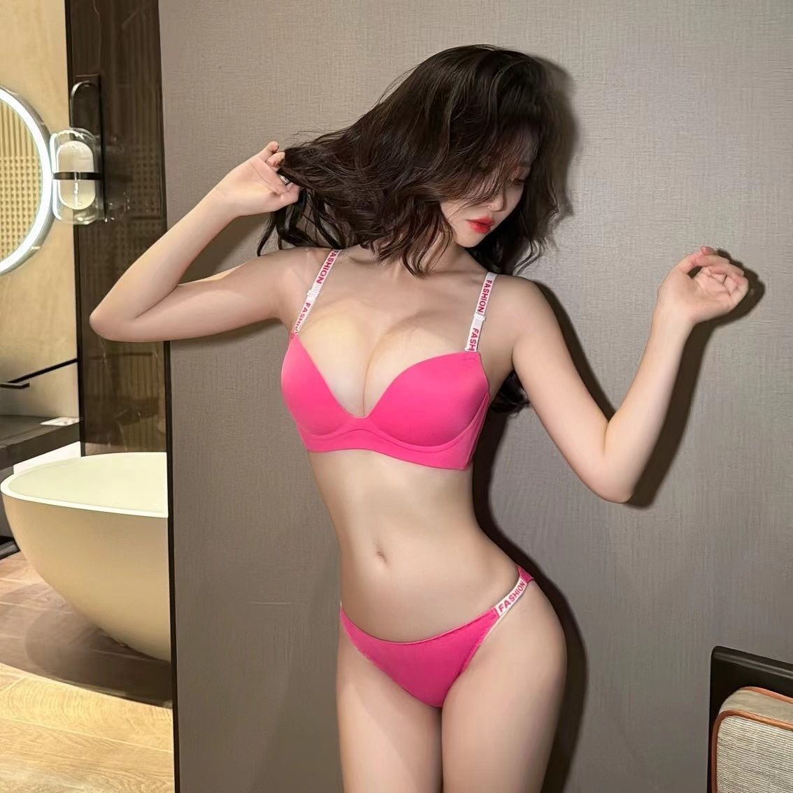 ギャルブラジャー 無地ノンワイヤー ブラ&ショーツ上下セット甘い高級感インナー女性用 育乳ブラ 盛りブラ