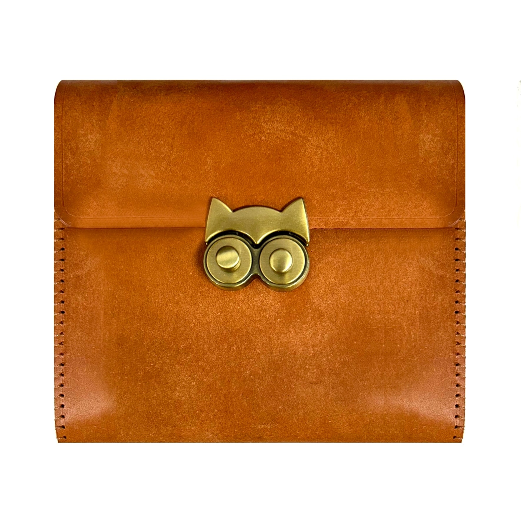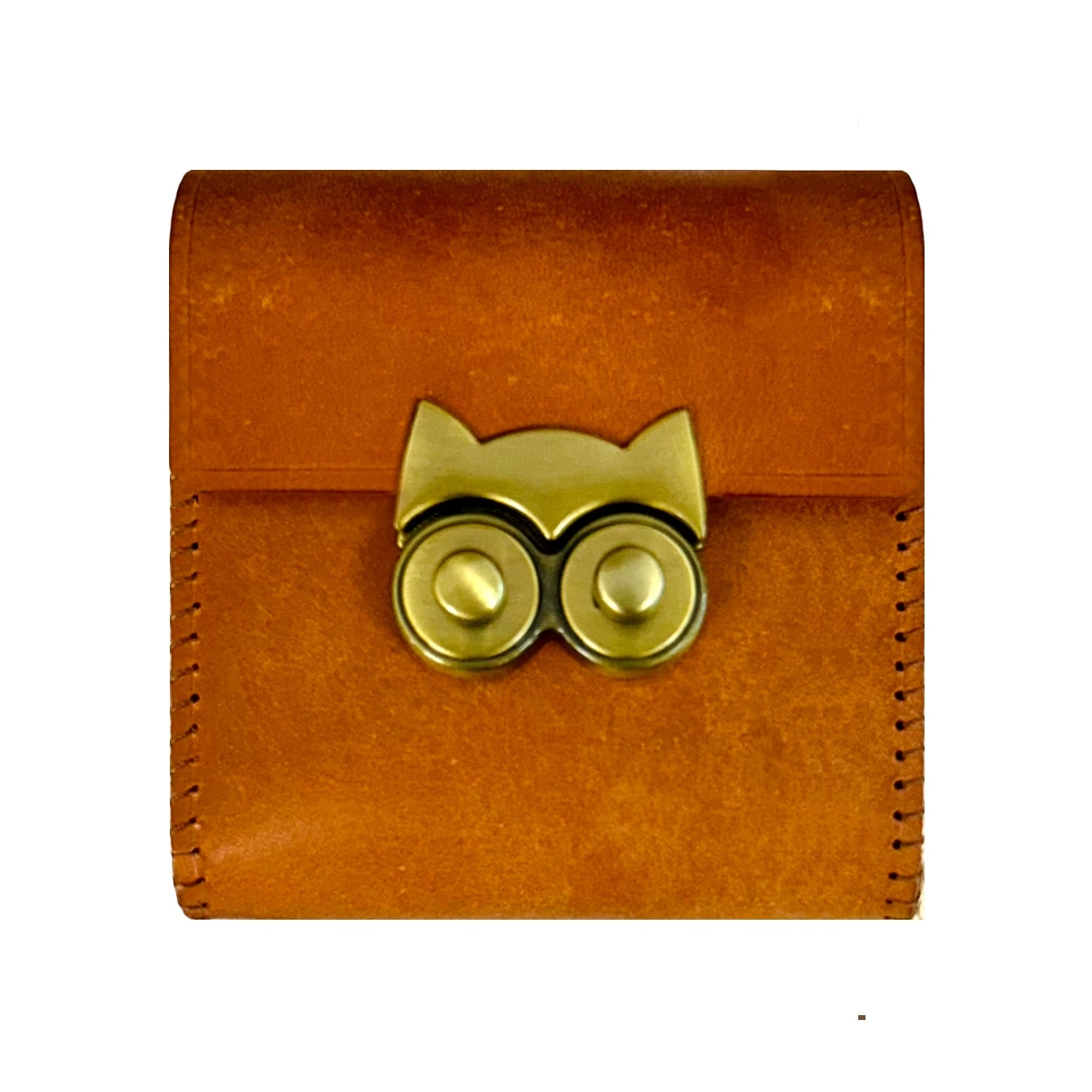 留め具のフクロウがかわいいです。サイズは小さく見えても沢山収納出来るので使いやすいと思います。