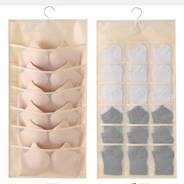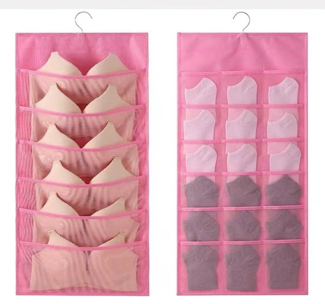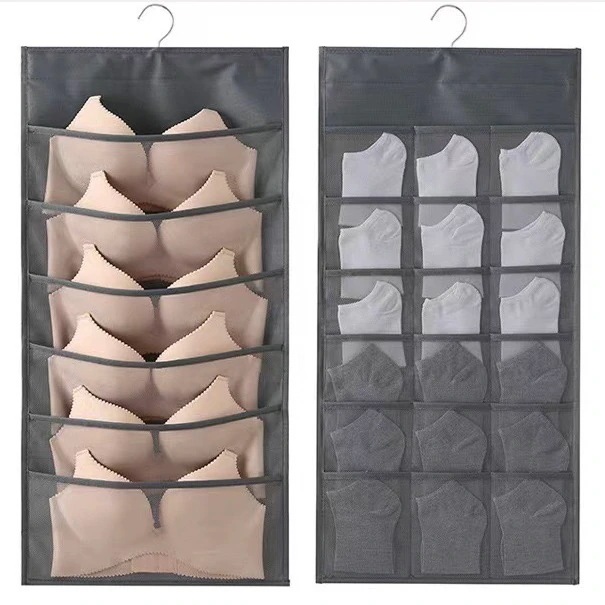 吊り下げ 収納 下着 両面収納 24ポケット ウォールポケット 下着収納 ハンガー式収納ラック 吊り下げ収納ラック 収納 吊り下げ クローゼット ブラ収納 y4