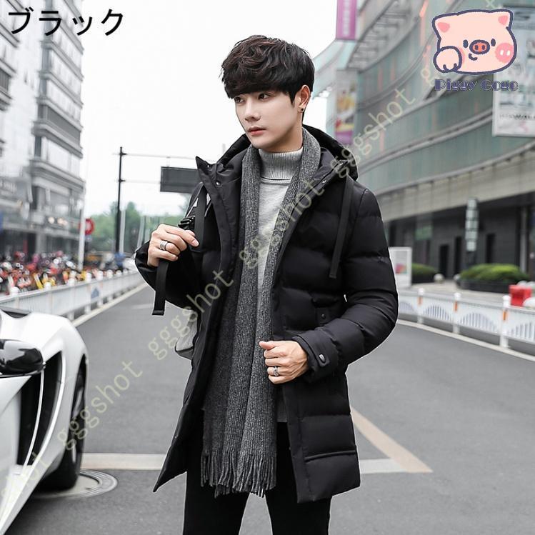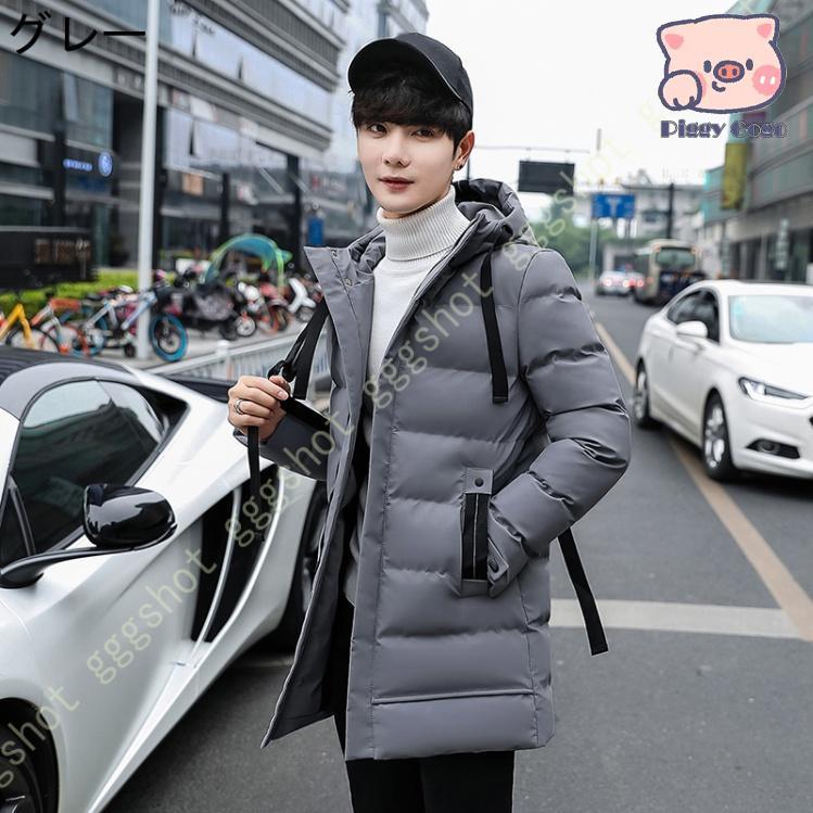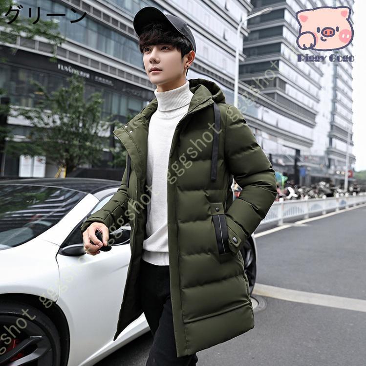 ダウンコート メンズ ロング コート 綿の服 無地 冬服 厚手 ジャケット トップス おしゃれ アウター コート フード付き 軽量 大きい アウトドア 防風