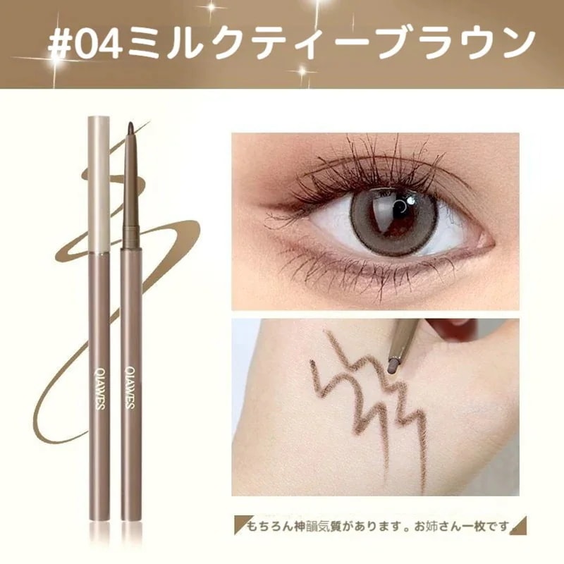 綺麗なグレージュって感じ。カサついてるから少し手の甲に出してアイライン描けばちゃんと色がのる。安いし色も消えないからよき