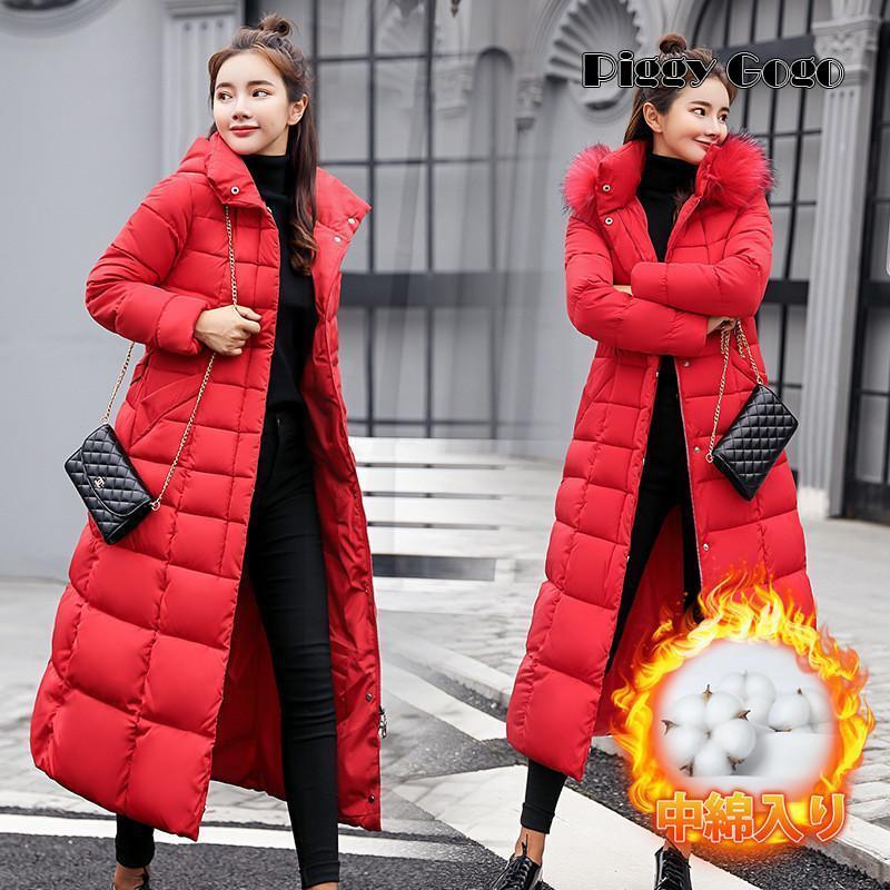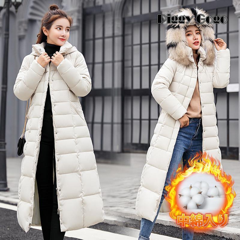ダウンコート ダウンジャケット 中綿コート レディース ロング丈 ファー 秋冬 厚手 アウター 中綿ジャケット ダウン風コート フード付き 防寒 大きい