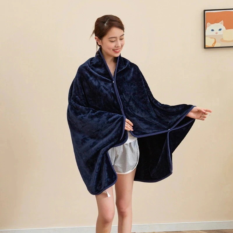 【新作】ブランケット ひざ掛け ショール 3way 着る毛布 肩掛け あったか ふわふわ 大判 巻きスカート 冬 暖かい 100×140cm ボタン付き デスク オフィス 洗える 腰巻