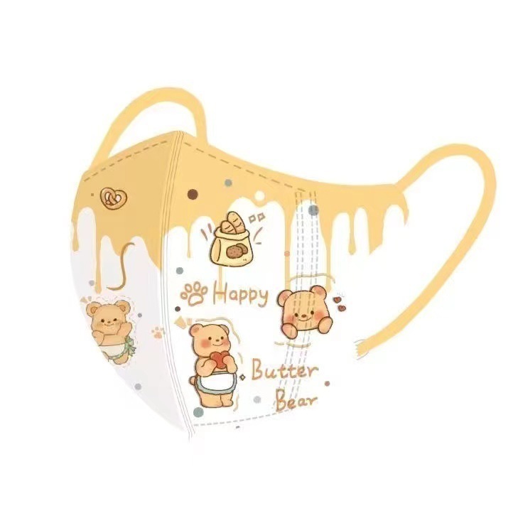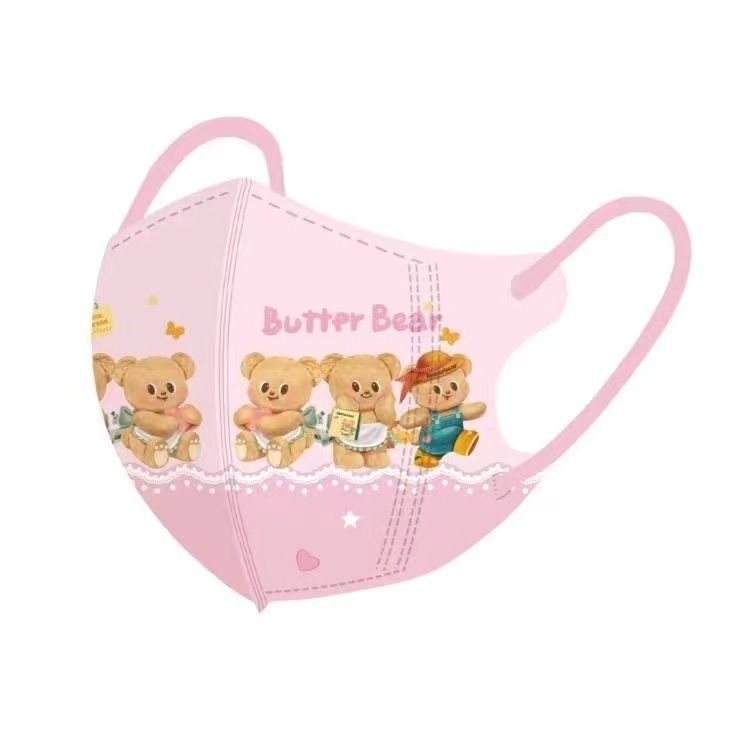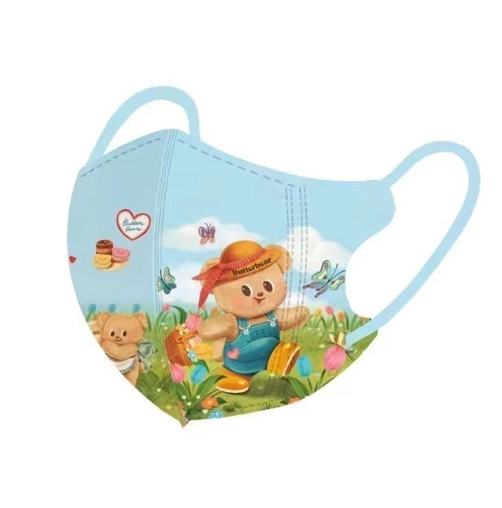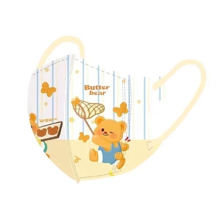 100枚3-12歳の子供用マスクバターベア立体独立包装漫画かわいいバターベア子供用保護マスク