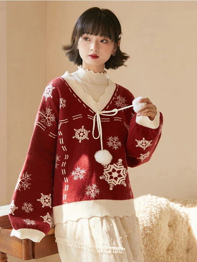 秋 冬 レディースファッション ベーシックニット クリスマス ジャンパー赤 プルオーバー雪の結晶ジャカード緩い汎用性の高い甘い モデル外 ニットトップス ニットセーター ニット長袖