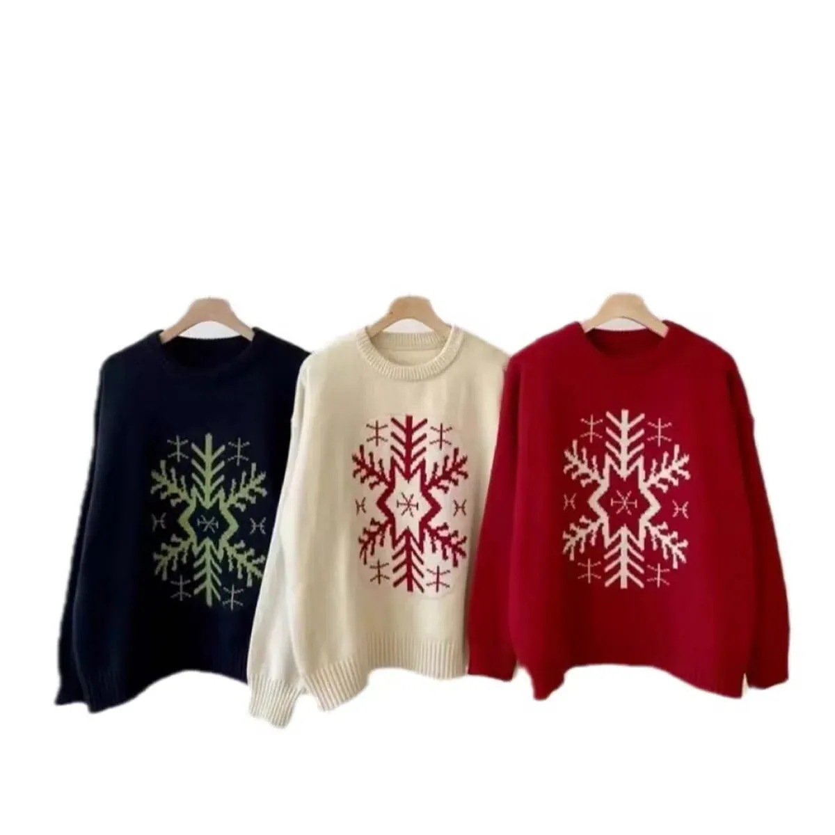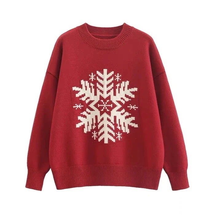 秋 冬 レディースファッション ベーシックニット クリスマス 赤 ラウンドネックジャンパー 新しい 怠惰な風緩く柔らかく 女性 ニットトップス ニットセーター ニット長袖