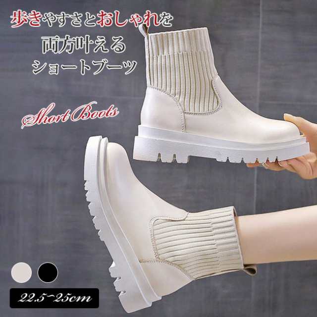 ブーツ ショートブーツ 24新作 レディース シューズ ミドル 靴 韓国 厚底 シンプル ローヒール フラット ぺたんこ 靴 美脚着痩せ 歩きやすい
