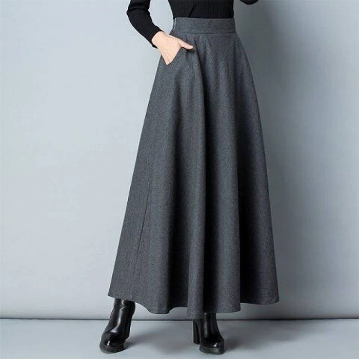 ロングスカートレディースロングフレアスカートレディーススカートマキシ丈大きいサイズロング丈フレア無地ファッションマキシスカートポケット付きウエストaラインハイウエスト定番ゆったり3040