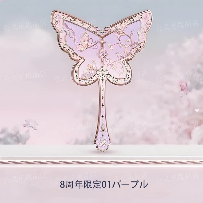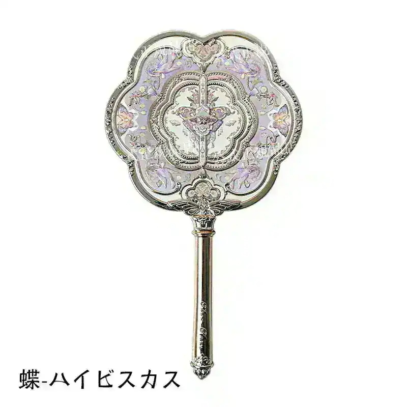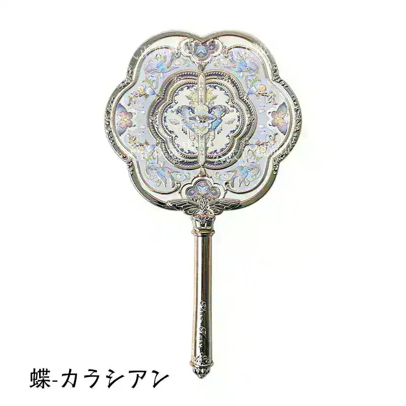 少し重めですがどこ行くにも持ち歩きたい可愛さです。鏡の周りの金属風の場所はレース模様になっていて、細かい装飾ばかりです。写真を撮る時顔を隠すのに使うとかでもめっちゃいいと思います🙂↕️胡蝶雲肩の方はプリントっぽい部分もあるのですが、模様によって凹凸が作られておりとても綺麗です。