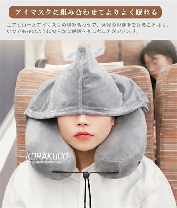 【即納】ネックピロー H型 U型 フード付き エアピロー ベロア 収納ポーチ付 ネイビー グレー ブラック トラベル 飛行機 車 バス 洗える 首枕 携帯枕 空気枕 旅行 出張 昼