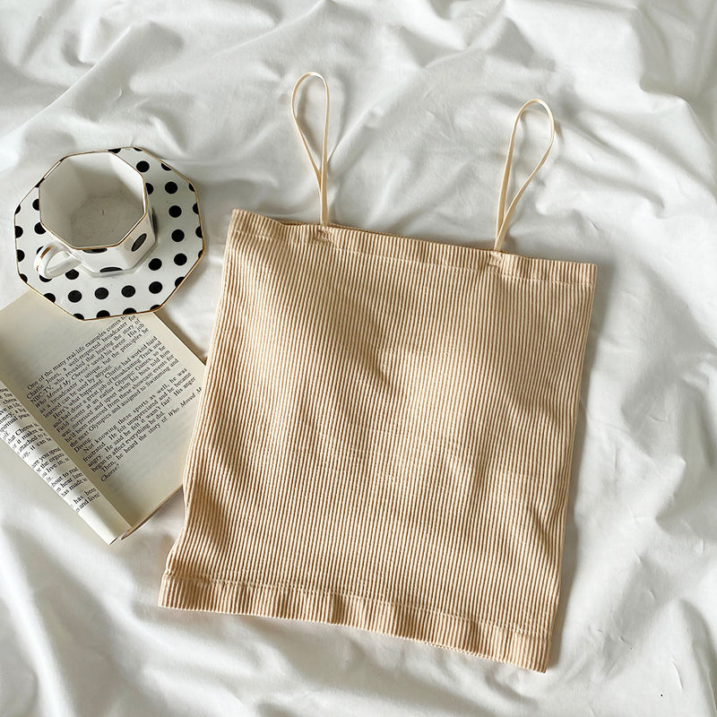 【夏の新作】カップ付きキャミソール ブラトップ 韓国 カラーベース 美背ワンピースハーネスブラ 胸パッド付き 女性用 夏用 ノーブレ露着 インナー兼用ベスト