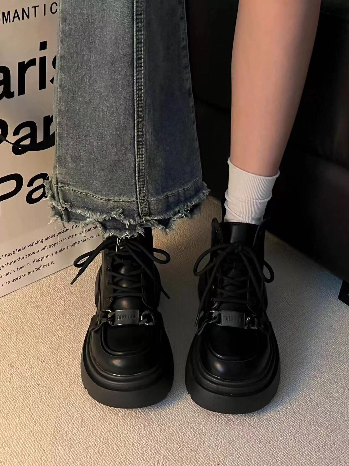 韓国ファッション ショートブーツ 厚底増高機関車マーチンブーツ子供2024秋冬新作カジュアルショートブーツデザイン感ショートブーツダッフルブーツ